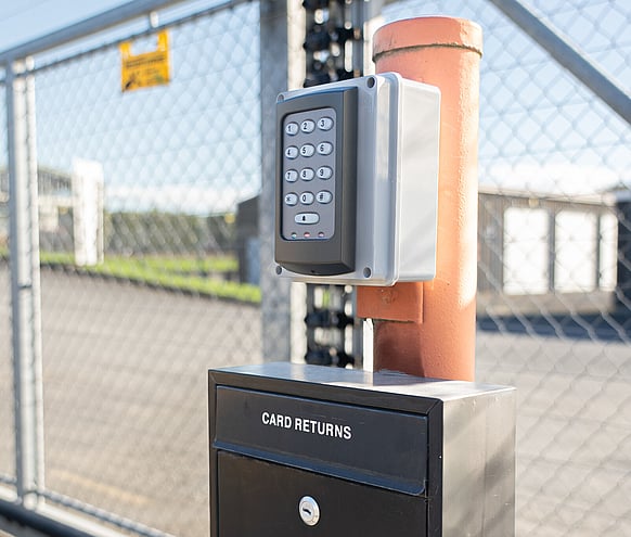 Fully controlled security site access gate which allows you 24 hour entry using your own swipe card, or pin code custom only to you.